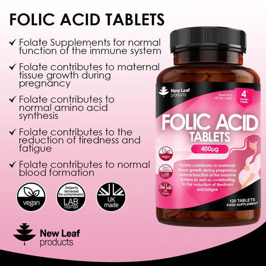 New Leaf - Folic Acid Tablets 400mcg - 4 Months Supply