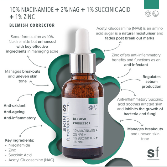 Skin Functional - Blemish Corrector | 10% Niacinamide + 2% NAG + 1% Succinic Acid + 1% Zinc | 30ml