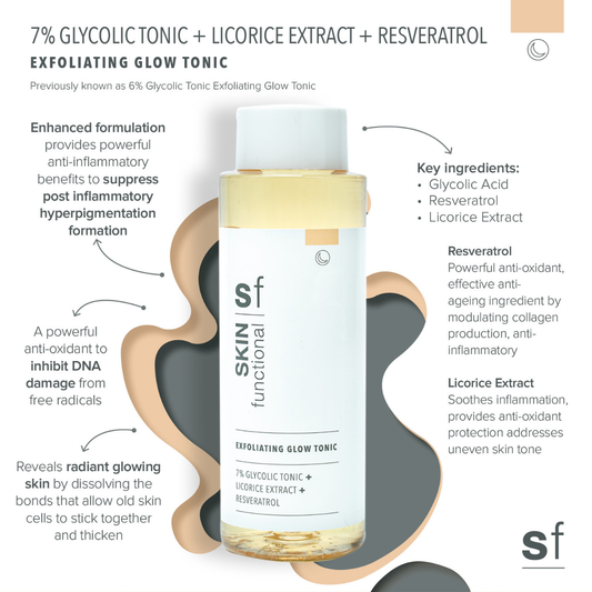 Skin Functional - Exfoliating Glow Tonic | 7% Glycolic Acid + Licorice Extract + Resveratrol | 200ml