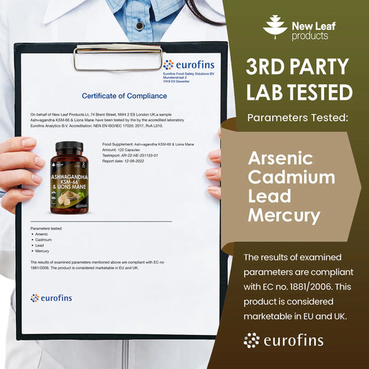 New Leaf - Ashwagandha KSM-66 & Lions Mane Capsules - 2 Months Supply