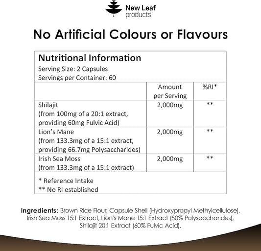 New Leaf - Shilajit, Sea Moss & Lions Mane - 2 Month Supply
