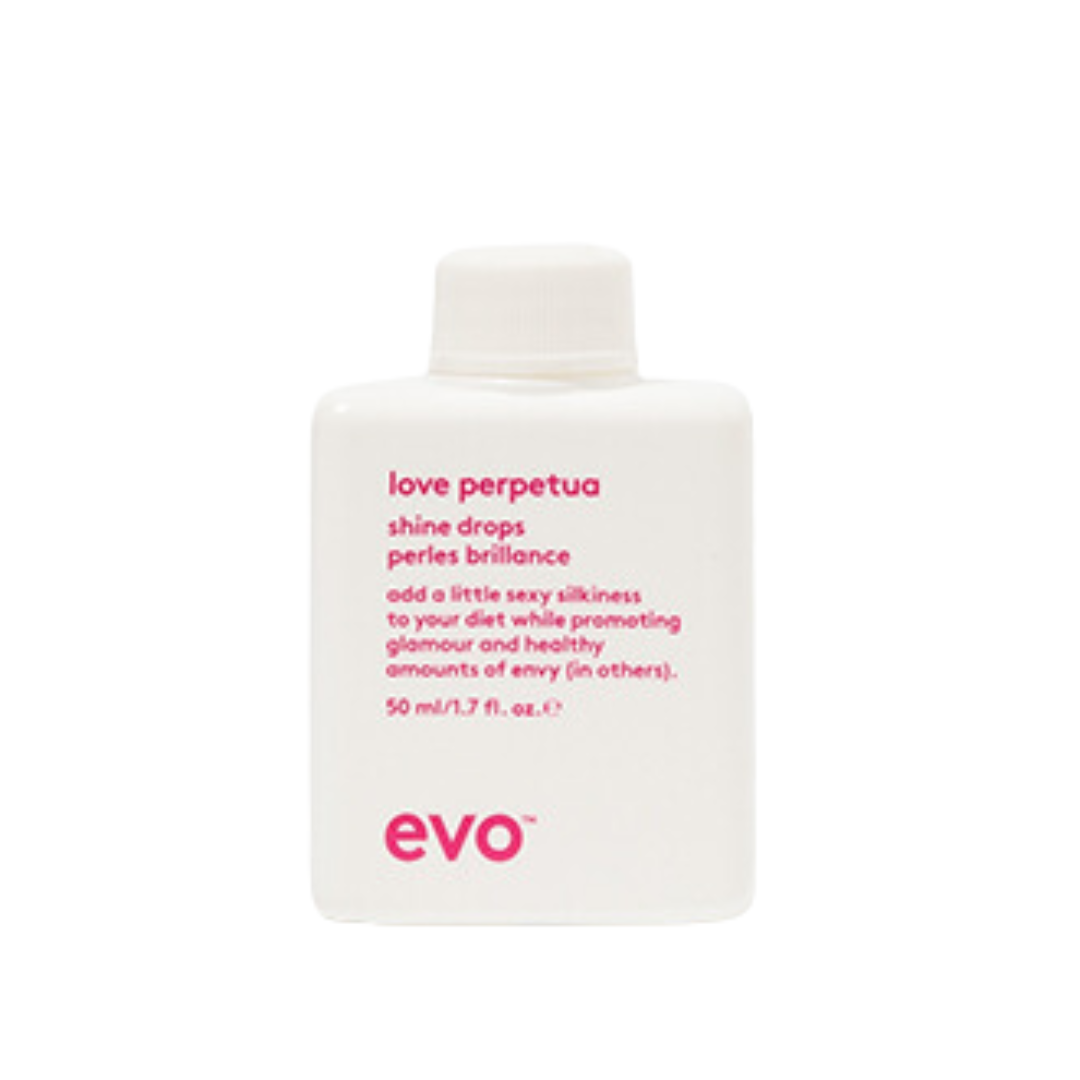 love perpetua shine drops add gloss and slip to any finished hair style. these shine drops work to seal the cuticle to prevent moisture loss and protect hair from the effects of humidity. for extra shine and enhanced combability of thick, coarse hair, love perpetua can be applied to the ends of towel-dried hair prior to heat styling. love perpetua shine drops are part of the smooth family, designed to smooth and control frizzy, unruly, color-treated hair.