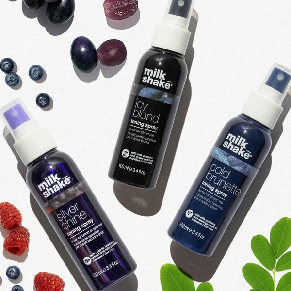 Milkshake Icy Blond Toning Spray is a specific toning spray for blonde hair. It is a no-rinse spray formulated with black pigment that counteracts brass while depositing ash tones in blonde or lightened hair. Gives your hair a healthy appearance while detangling and improving manageability.