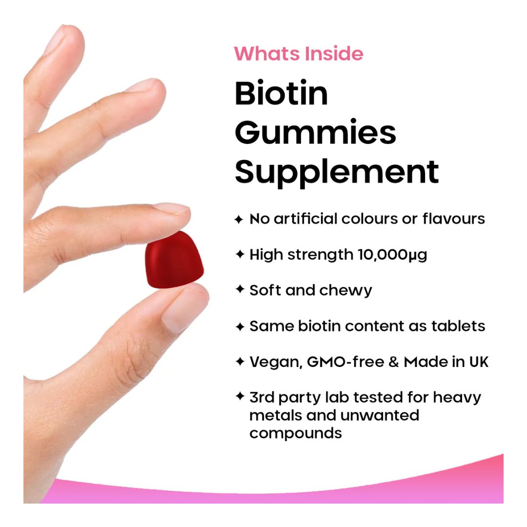 Unleash the potential of Biotin gummies. Infused with this essential vitamin, our gummies promote healthy hair, skin, and nails. Experience the beauty benefits of Biotin in delicious gummy form, making daily supplementation a breeze. Elevate your well-being and enhance your natural radiance with our Biotin gummies today!