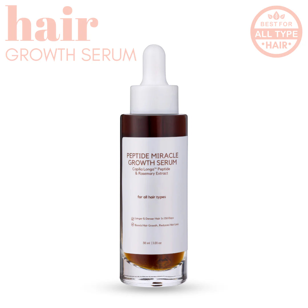 Award-winning and scientifically researched, this extraordinary peptide delivers unparalleled results. Our lightweight serum is a game-changer, effortlessly nourishing and fortifying your hair follicles without leaving your scalp greasy. Get ready to witness the transformative effects of our Miracle Hair Growth Serum and unlock the hair you've always dreamed of.