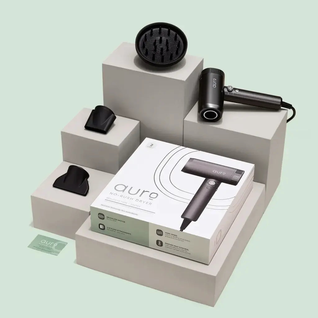 The Auro No-Rush Dryer proves that high performance and hair care can coexist. Its 110 000 rpm brushless motor delivers salon-level airflow for fast, even drying. The LavalFlow™ system directs warm air precisely along each strand, reducing frizz and enhancing shine, while Neutral Ion Technology neutralises static, smooths hair, and locks in long-lasting softness. A stepless heat dial gives you precision temperature control - for full styling freedom without damage...For hair that is both beautiful and healthy - in a fraction of the time.